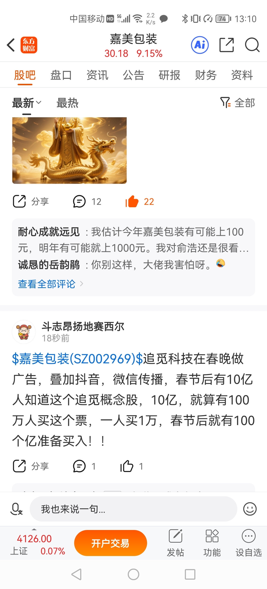 温馨提示: 1.根据《证券法》规定,禁止编造、传播虚假信息或者误导性信息,扰乱证券市场;2.用户在本社区发表的所有资料、言论等仅代表个人观点,与本网站立场无关,不对您构成任何投资建议。用户应基于自己的独立判断,自行决定证券投资并承担相应风险。《东方财富社区管理规定》