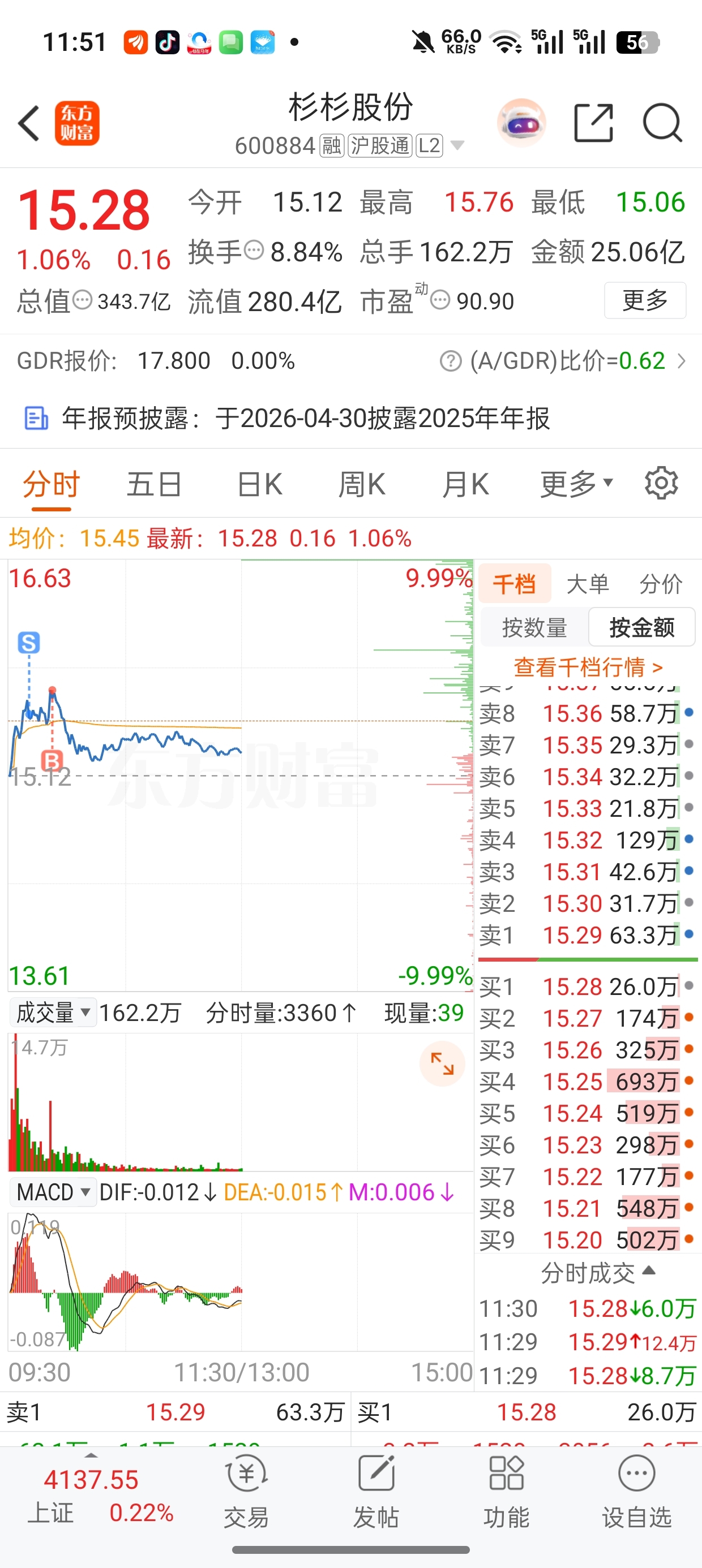 $杉杉股份(SH600884)$ 还是被直线骗了,一个反T,太痛了
