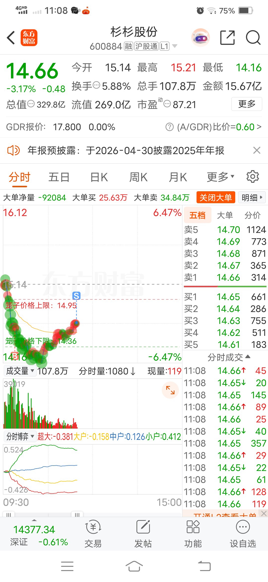 $杉杉股份(SH600884)$ 做T失败,买早了,刚好T本跑了