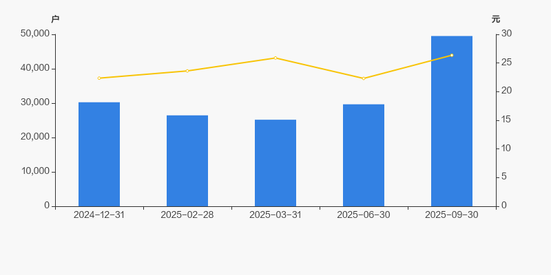 2024年12月31日至今,公司股东户数显著大幅增长,区间涨幅达63.70%。2024年12月31日至2025年9月30日区间股价上涨17.90%。