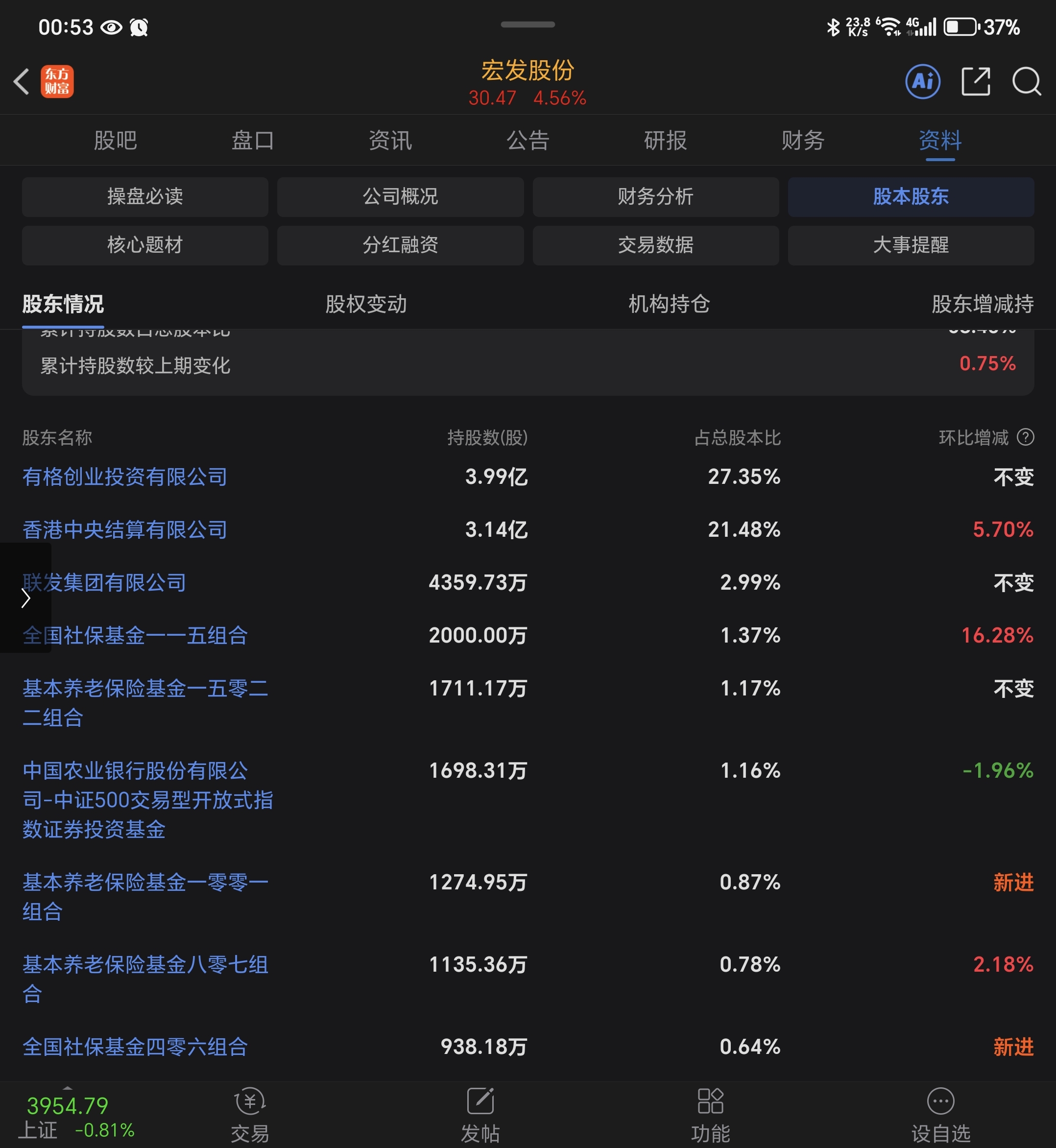$宏发股份(SH600885)$ 这是社保基金扎堆加仓????这么急?