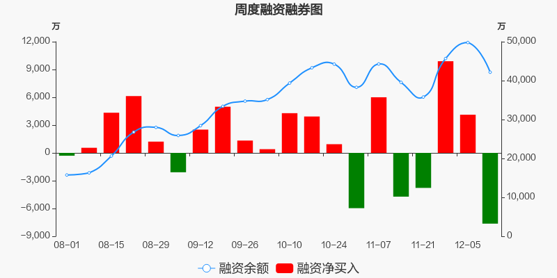 宏发股份本周(2025/12/08-2025/12/12)累计涨幅达4.39%,截至12月12日最新股价报收30.42元。从增量上来看,12月8日至12月12日融资买入交易规模1.6亿元,融资偿还规模2.36亿元,期内融资净偿还7633.82万元。从存量上来看,截止12月14日,宏发股份融资融券余额4.28亿元,其中融资余额规模4.22亿元,融券余额规模681.04万元。
