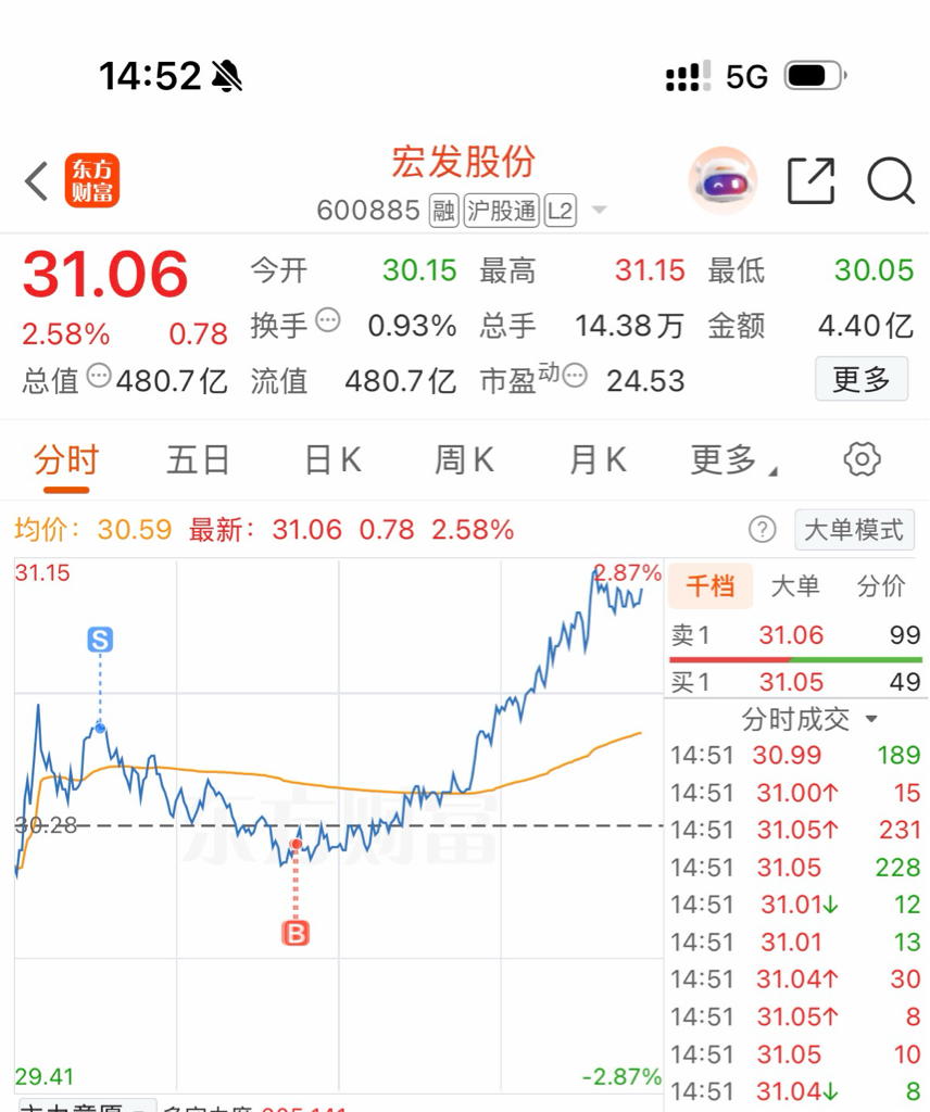 $宏发股份(SH600885)$ 偶尔做了一把成功的T