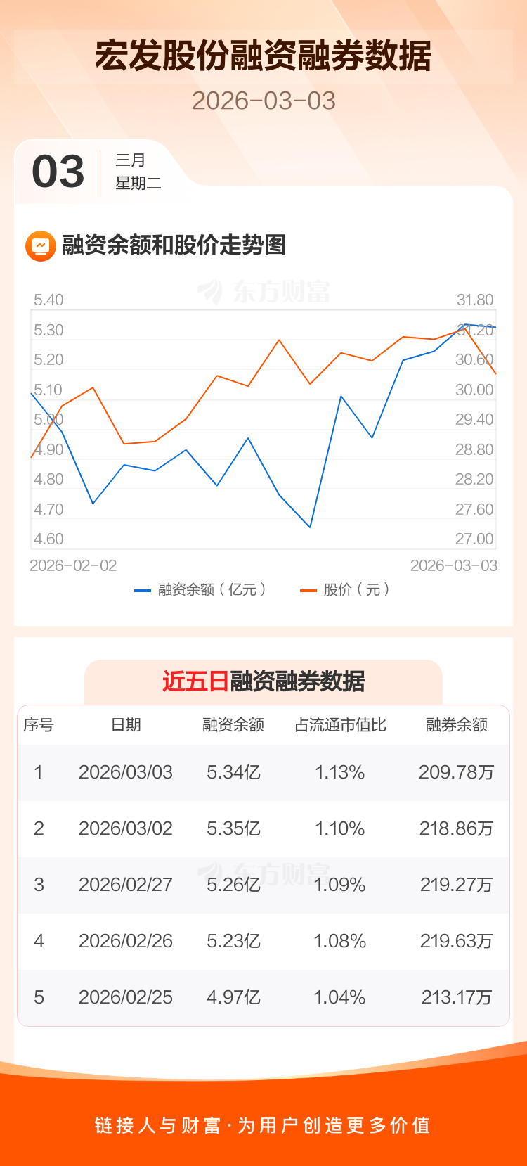 交易所最新数据显示,宏发股份于2026年3月3日获融资买入6770.55万元,融资偿还6877.50万元,当日融资净偿还106.95万元。目前,该股融资余额5.34亿,占流通市值比例为1.13%。