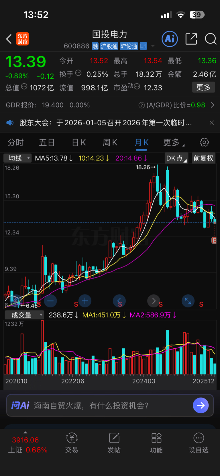 $国投电力(SH600886)$ 翻倍的票了,你们还抄底!