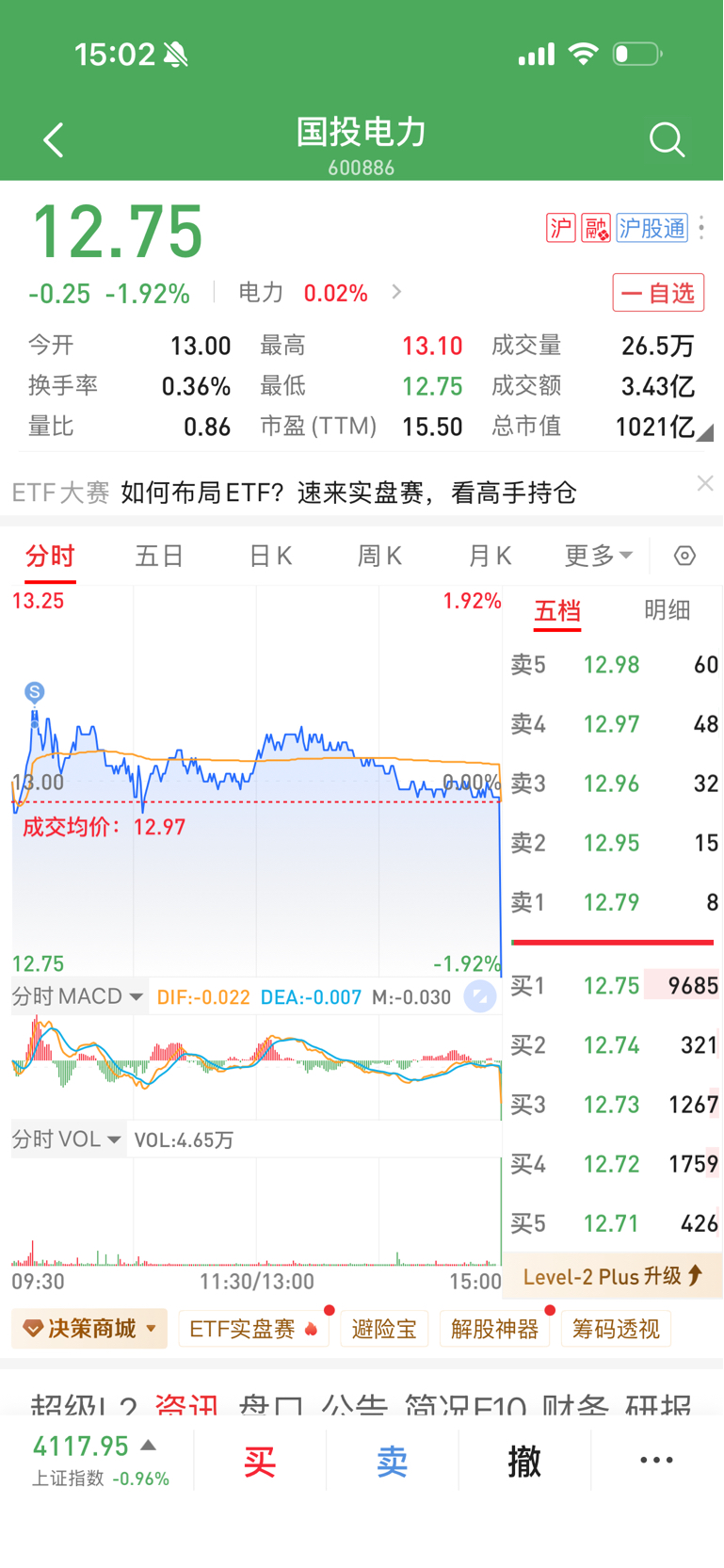 $国投电力(SH600886)$ 好险,差点被按住
