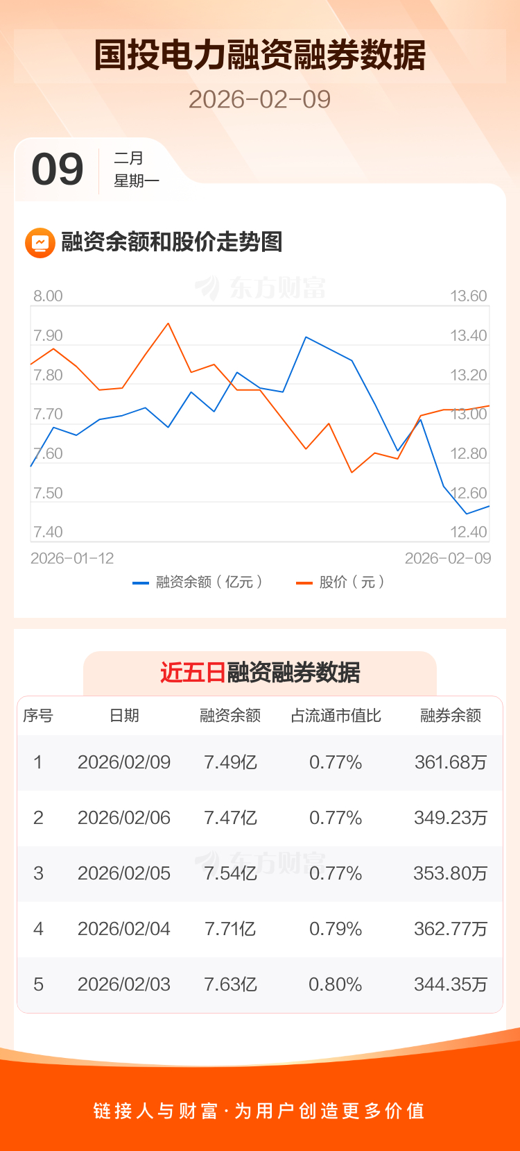 交易所最新数据显示,国投电力于2026年2月9日获融资买入1599.32万元,融资偿还1416.67万元,当日融资净买入182.65万元。目前,该股融资余额7.49亿,占流通市值比例为0.77%。