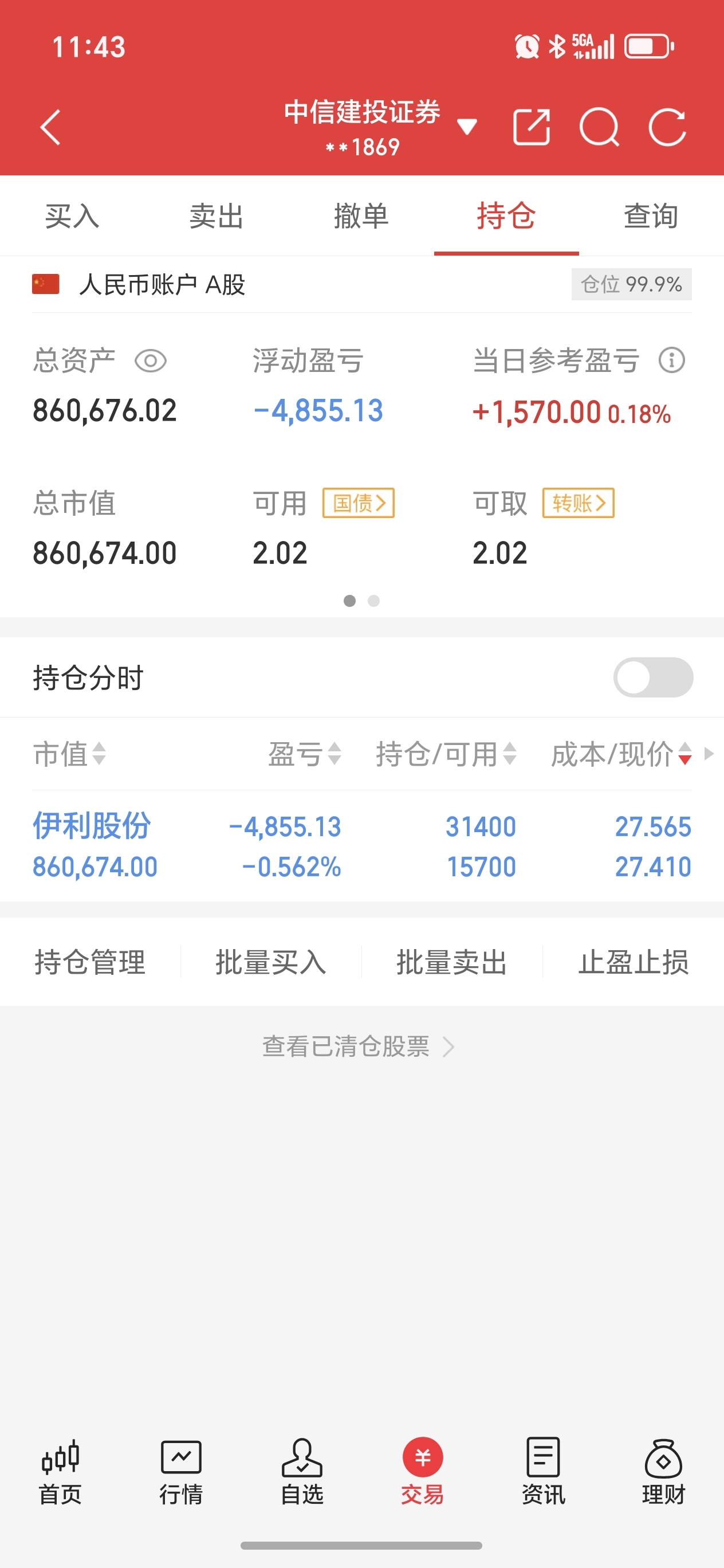 $伊利股份(SH600887)$ 突然感觉好没意思,不想玩了