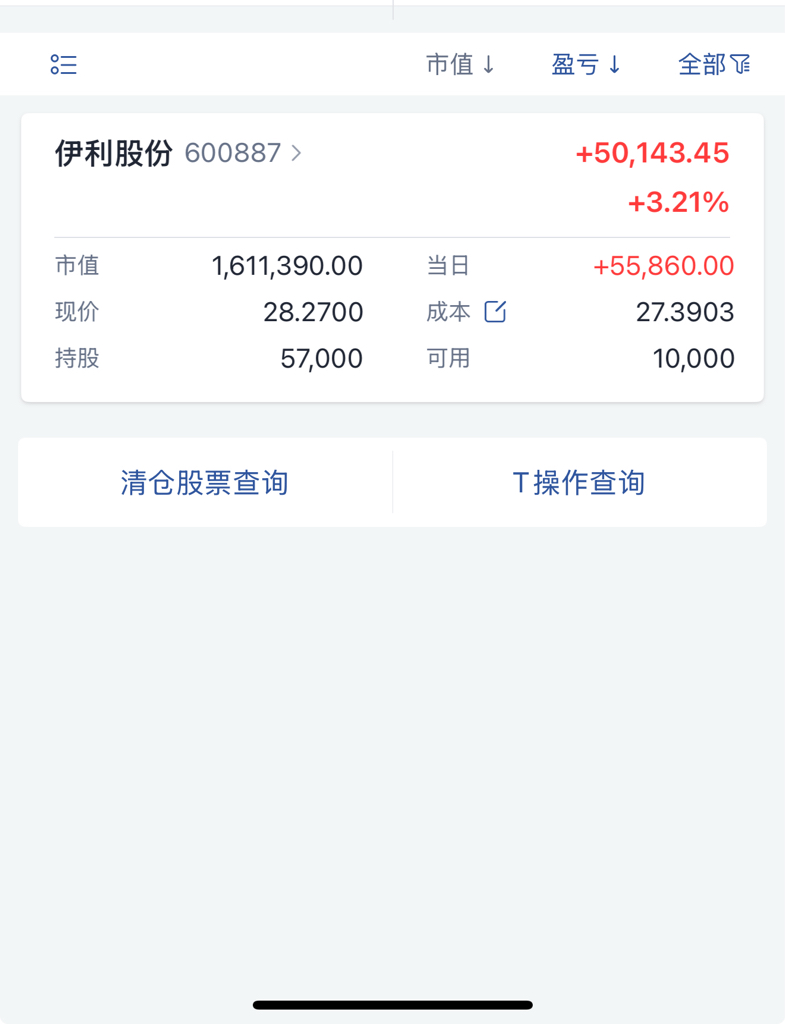 $伊利股份(SH600887)$ 开盘亏 收盘赚5w可以