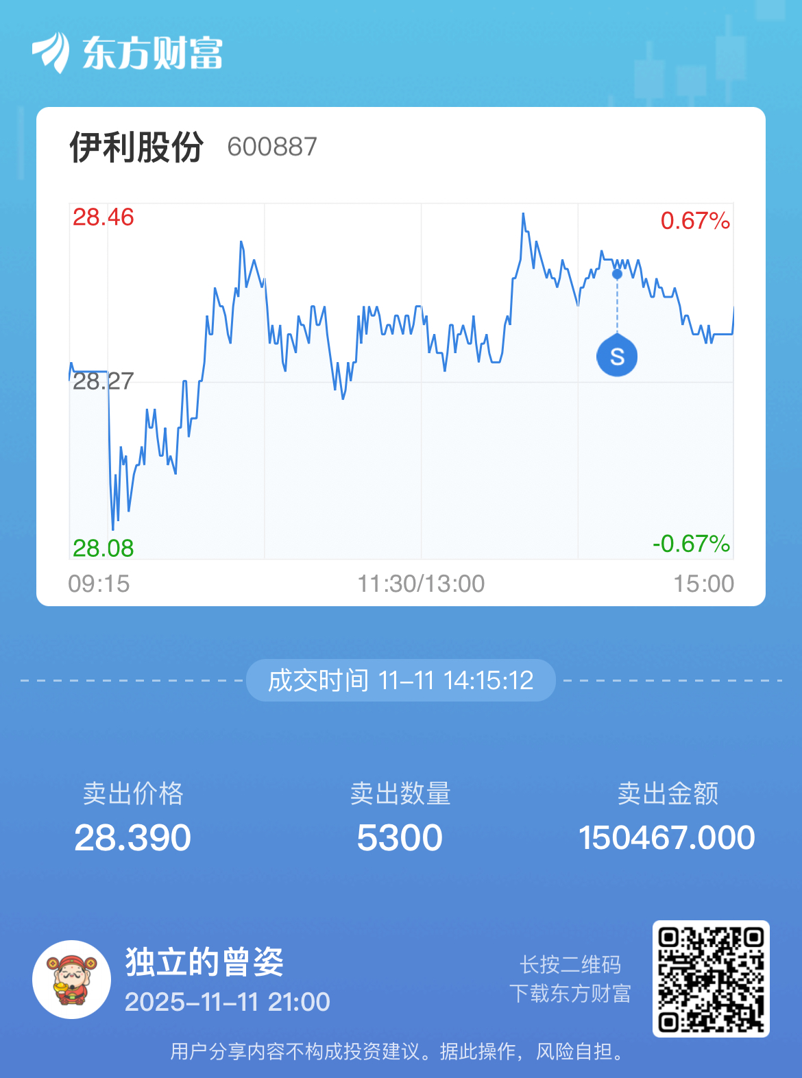 出了伊利了,全仓中铝今日成交股票:操作原因: