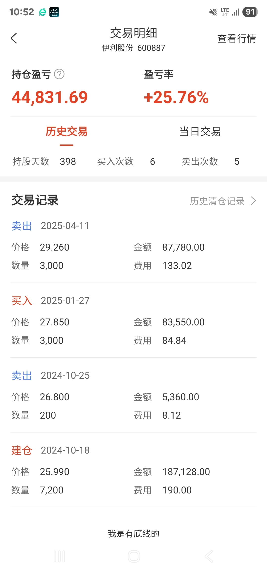$伊利股份(SH600887)$ 买伊利的千万不要追高买,它没有故事!要做好长期持股的准备。伊利不能实现让您马上发财,它是优质股、如果会的话可以做波段,不会的话那就放心持有,大涨的时候要守住寂寞。大跌的时候咱也不大担心,每年股息复投就慢慢回本或者长期吃股息吧。