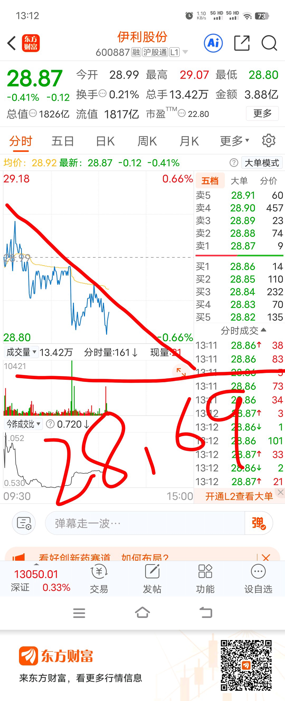 $伊利股份(SH600887)$ 规划好了,收盘价28.69