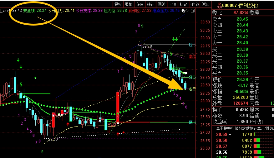 $伊利股份(SH600887)$ 近期连续小幅回落下来,今天低位刚好碰到了安全线28.37位置附近,接下来重点就看安全线附近的支撑情况,能稳住问题就不大,继续持仓,但有效跌破就要注意回落风险了,需要控制仓位应对。#炒股日记# #收盘点评#