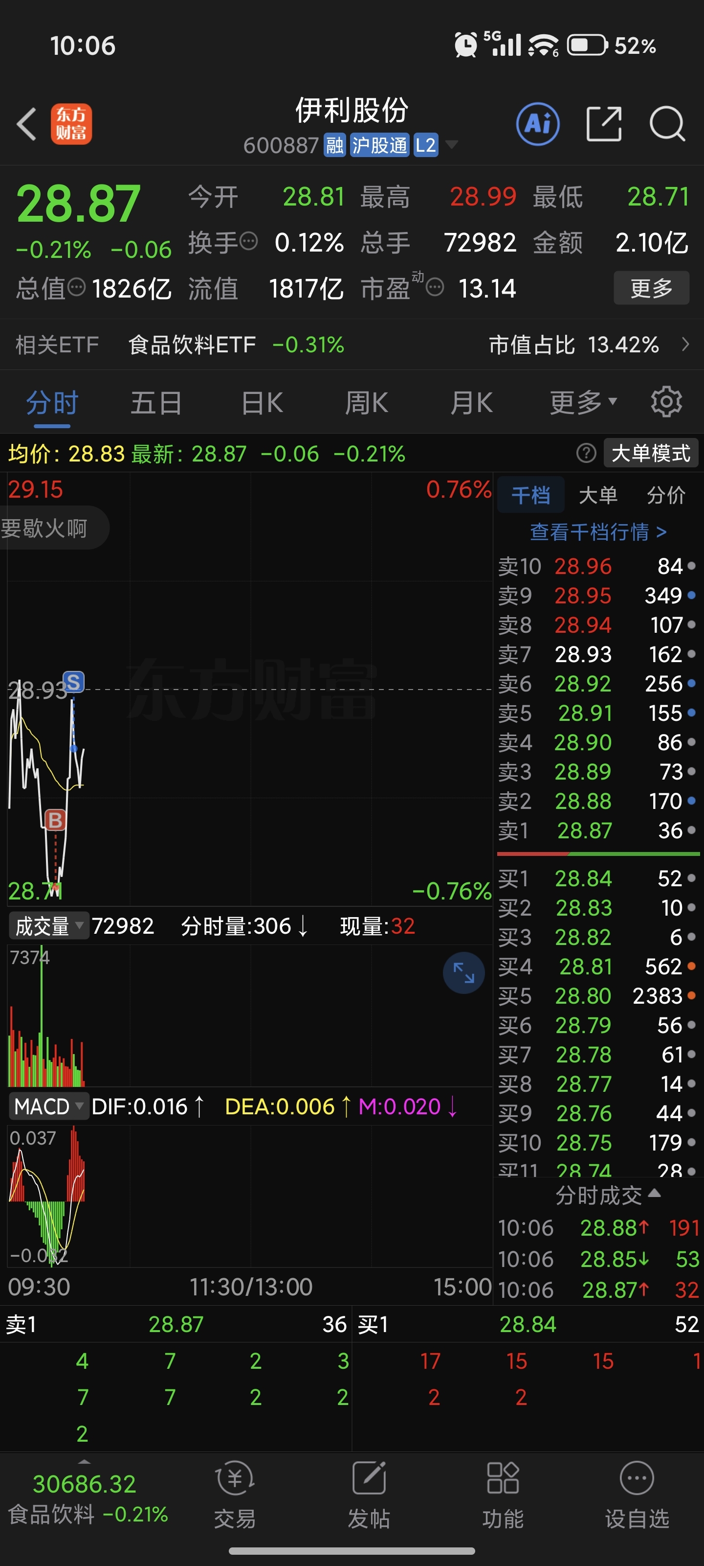 $伊利股份(SH600887)$ 我也跟你们学,几毛钱也T