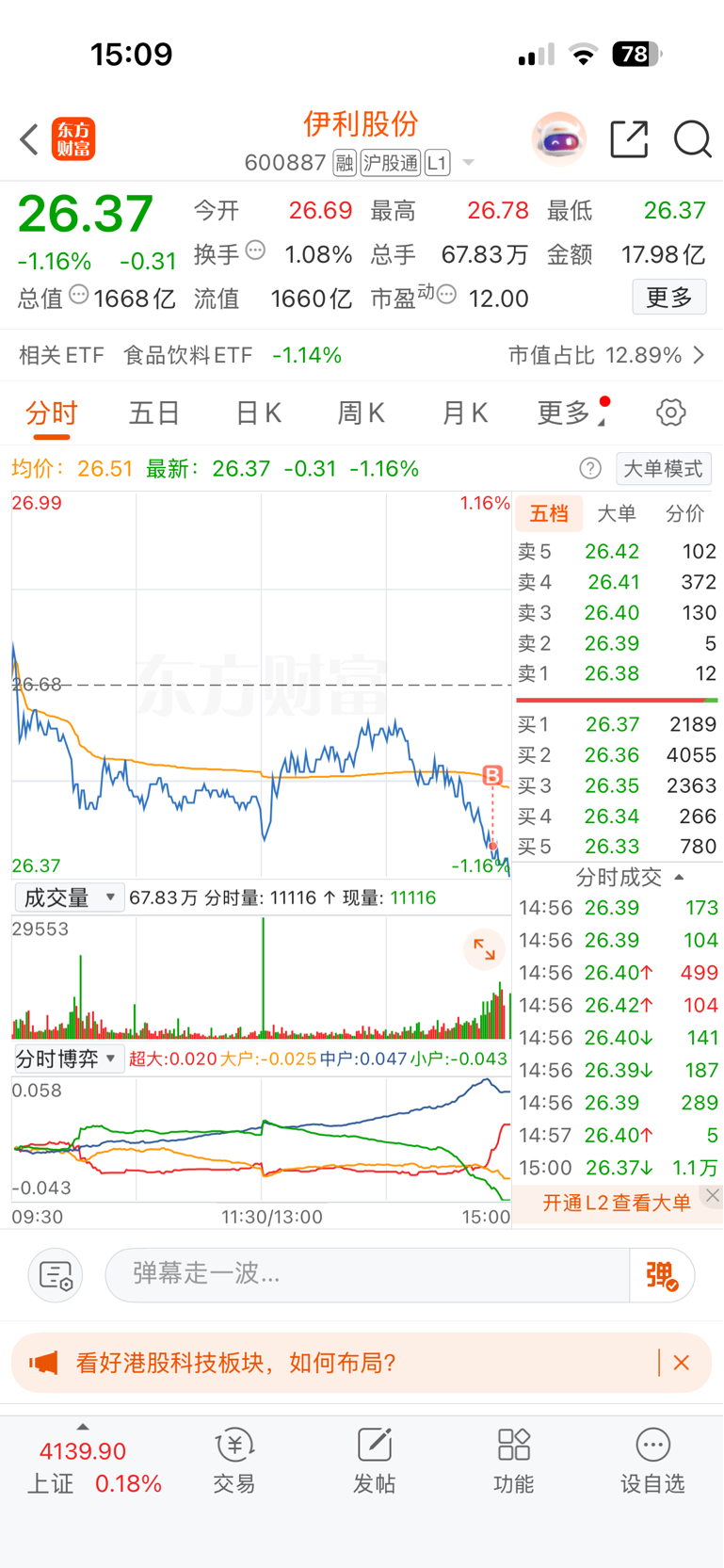 $伊利股份(SH600887)$ 说话算话100个进去了。看明天了。