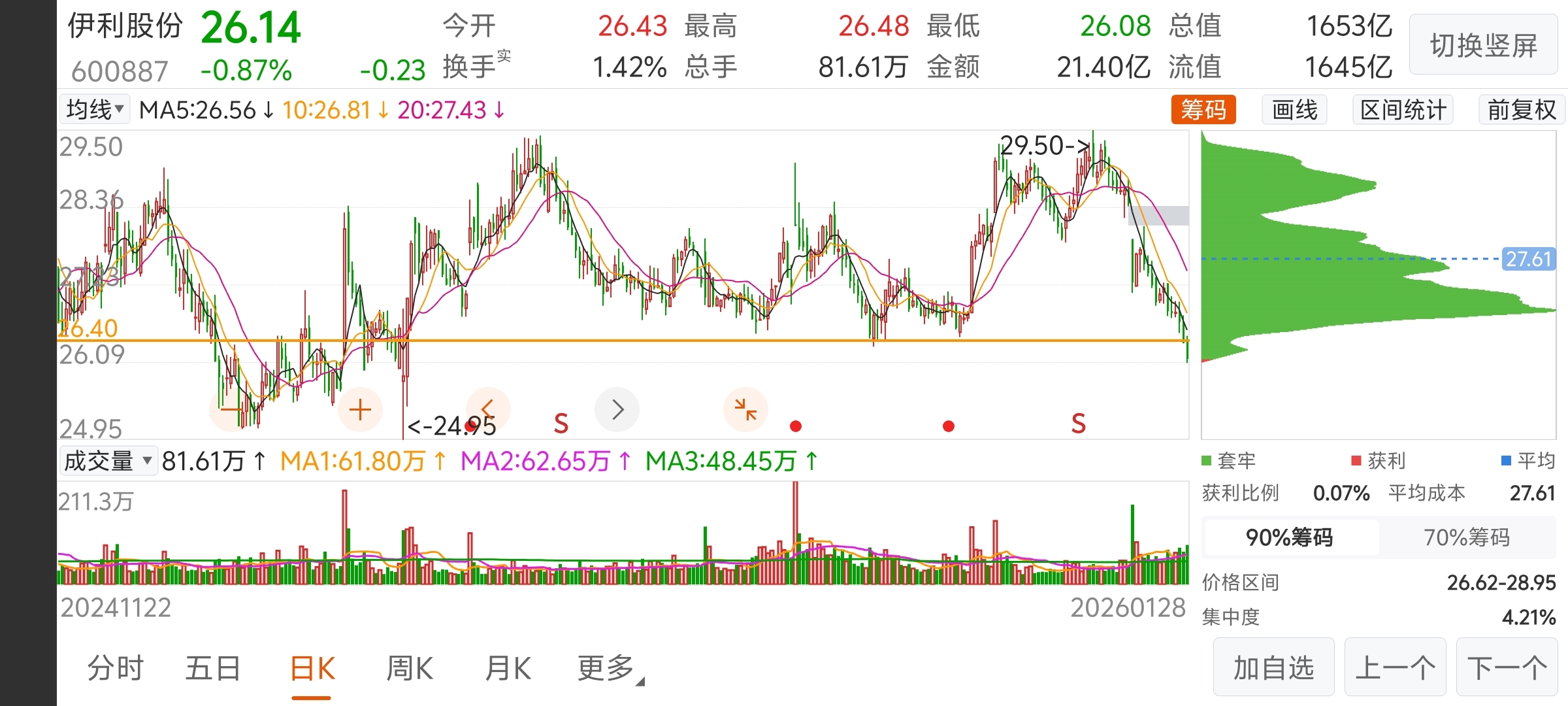 $伊利股份(SH600887)$ 今天竟然破位了,但感觉机会也不远了,等一个空翻多的信号可以抄个短线底