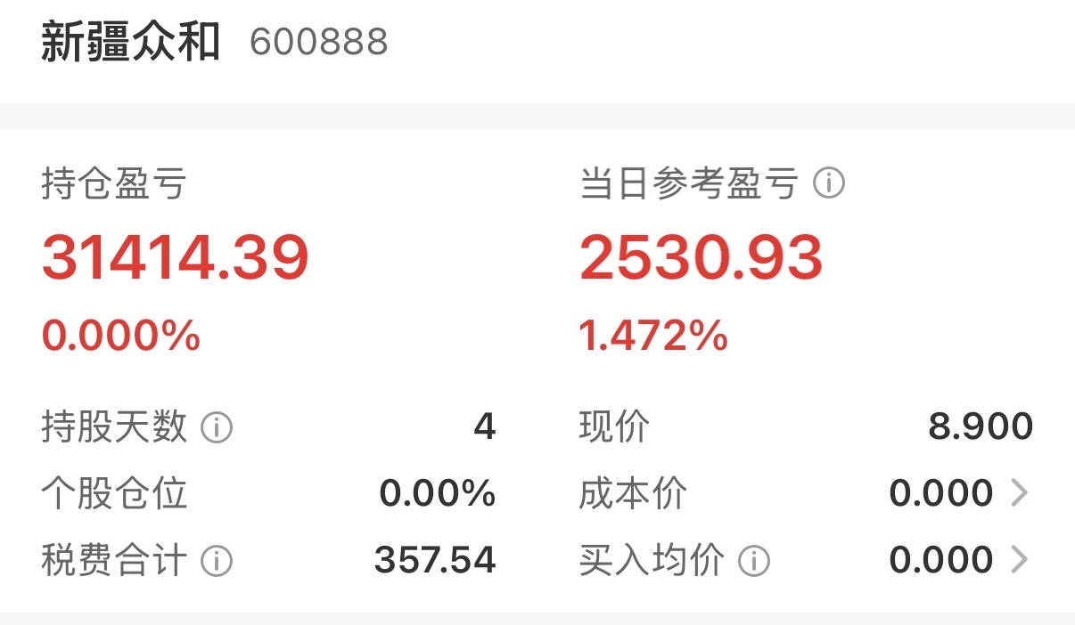 $新疆众和(SH600888)$ 小赚点,持仓四天,祝各位发财