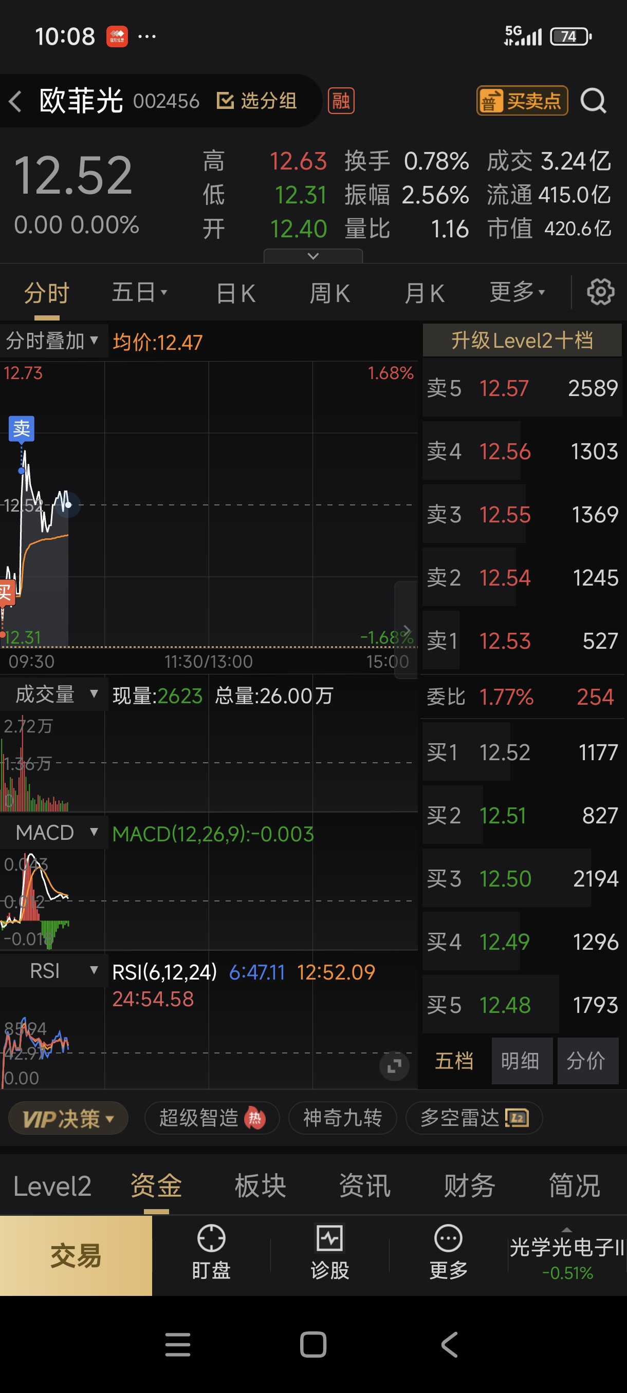 $新疆众和(SH600888)$ 留了100股,再T欧菲光