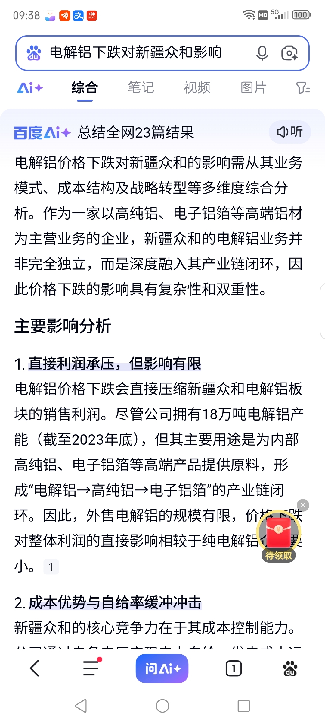 电解铝的涨跌对新疆众和的利润居然影响不大