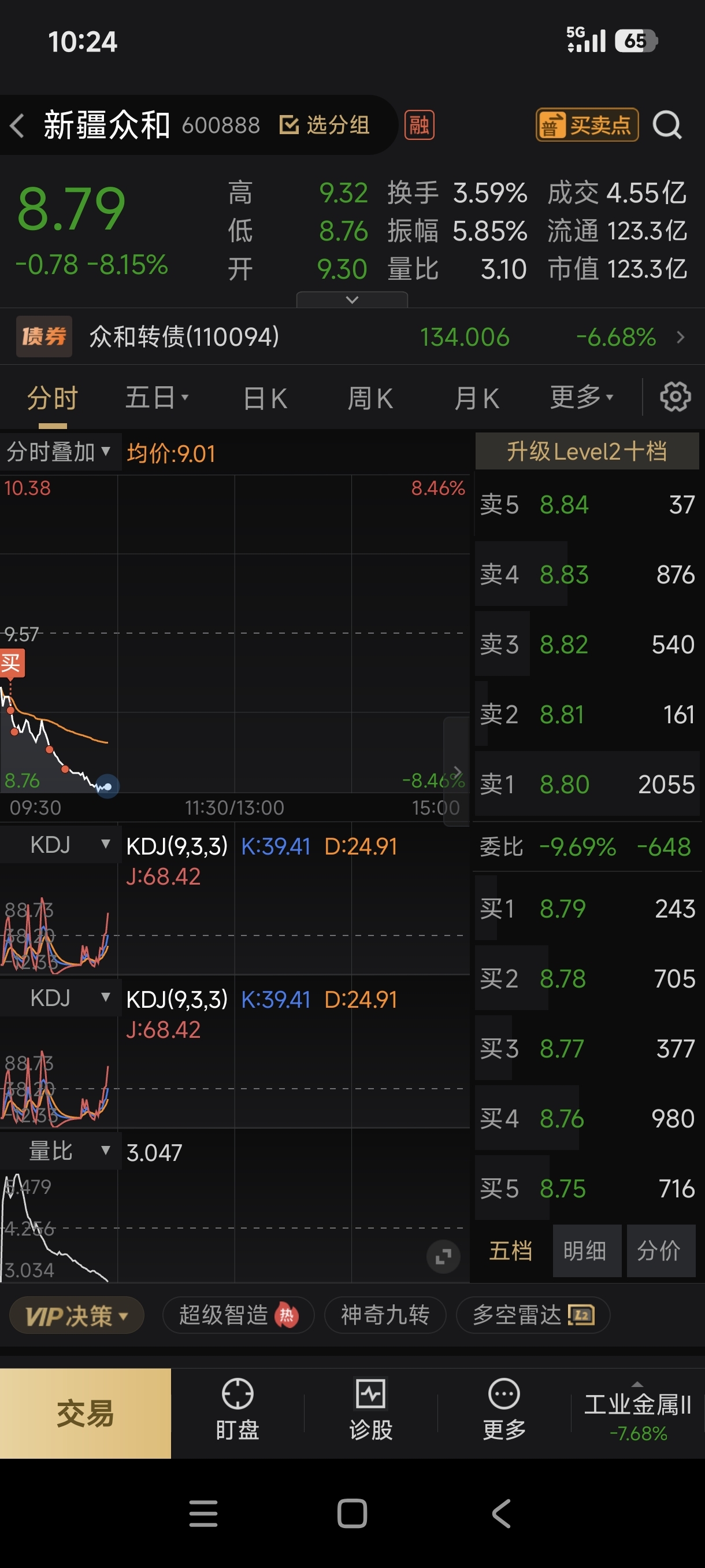 周三三个点的时候就已经出清了众合,周四回踩的时候忍住了没有动,因为我觉得会回踩8.8附近,但是到周五跌幅到4%的时候我还是没忍住,一路抄了大半,虽然当天没亏,但其实这种做法和赌徒无异,不改变这样的做法迟早会陷入亏损,一定要告诫自己少抄底,做趋势,加油