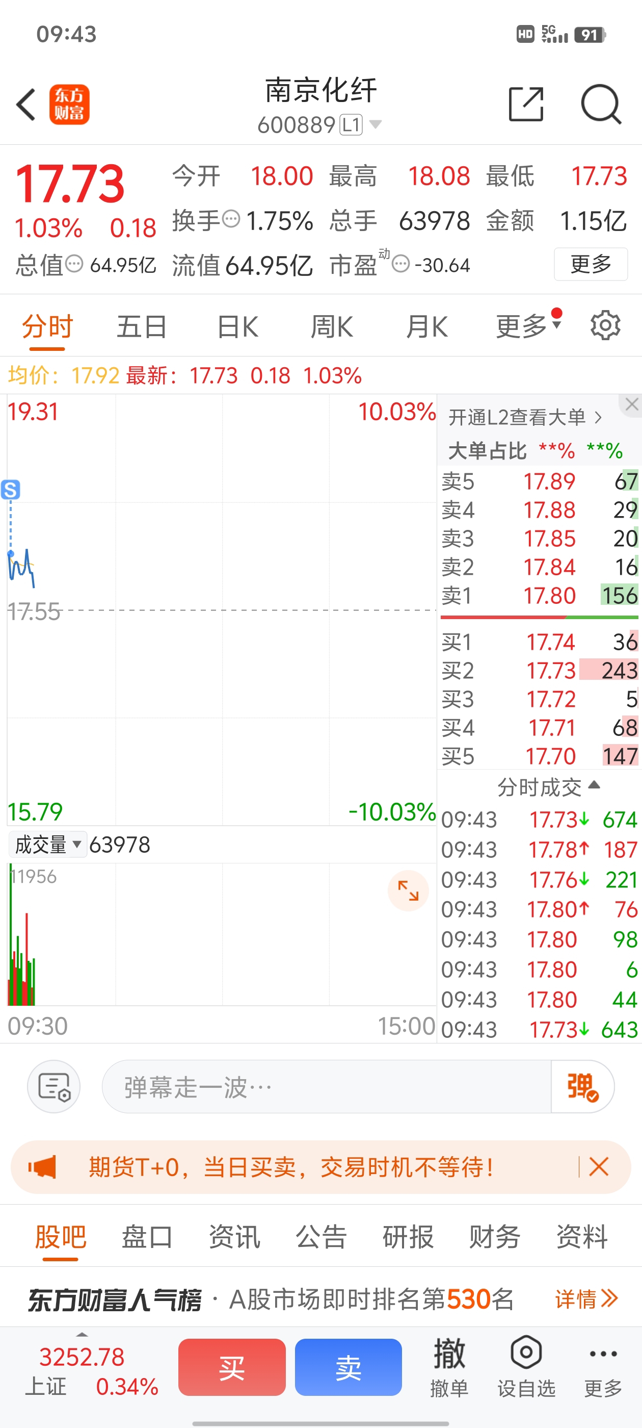 $南京化纤(SH600889)$ 开盘就跑了也不知道对错