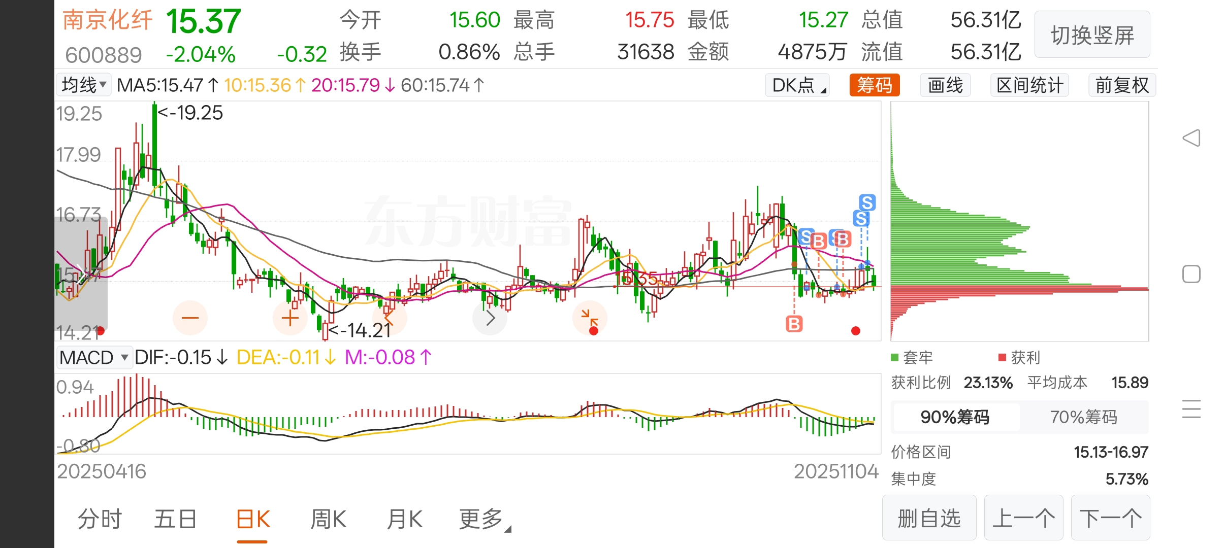 $南京化纤(SH600889)$ 底部震荡,赚了一餐菜钱,有机会再来,中科三环也是,赚了几千不跑,现在倒亏大几千,震荡行情,小赚就得跑