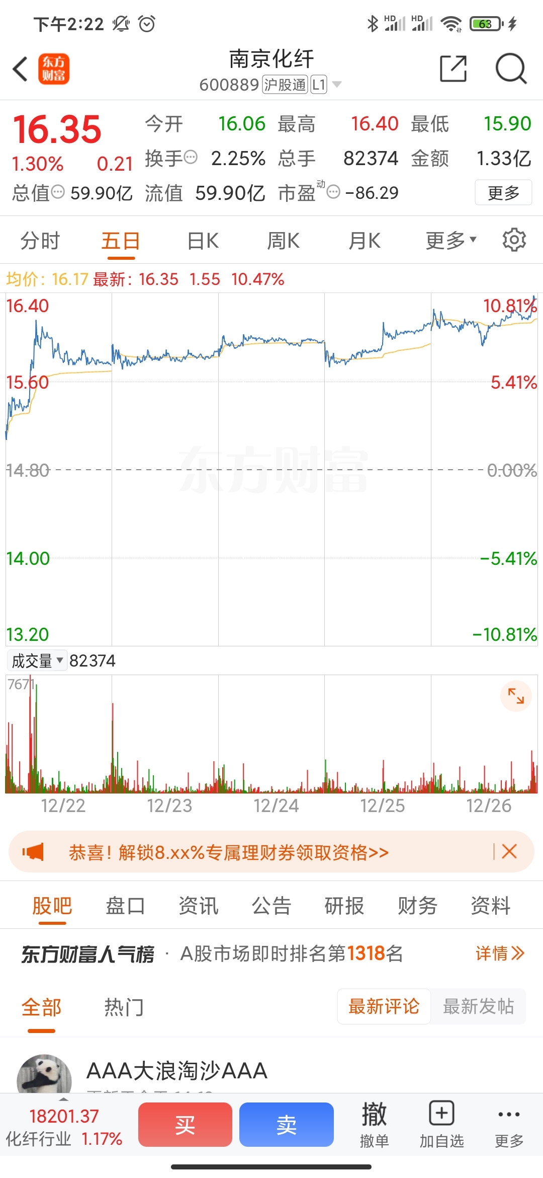 温馨提示: 1.根据《证券法》规定,禁止编造、传播虚假信息或者误导性信息,扰乱证券市场;2.用户在本社区发表的所有资料、言论等仅代表个人观点,与本网站立场无关,不对您构成任何投资建议。用户应基于自己的独立判断,自行决定证券投资并承担相应风险。《东方财富社区管理规定》