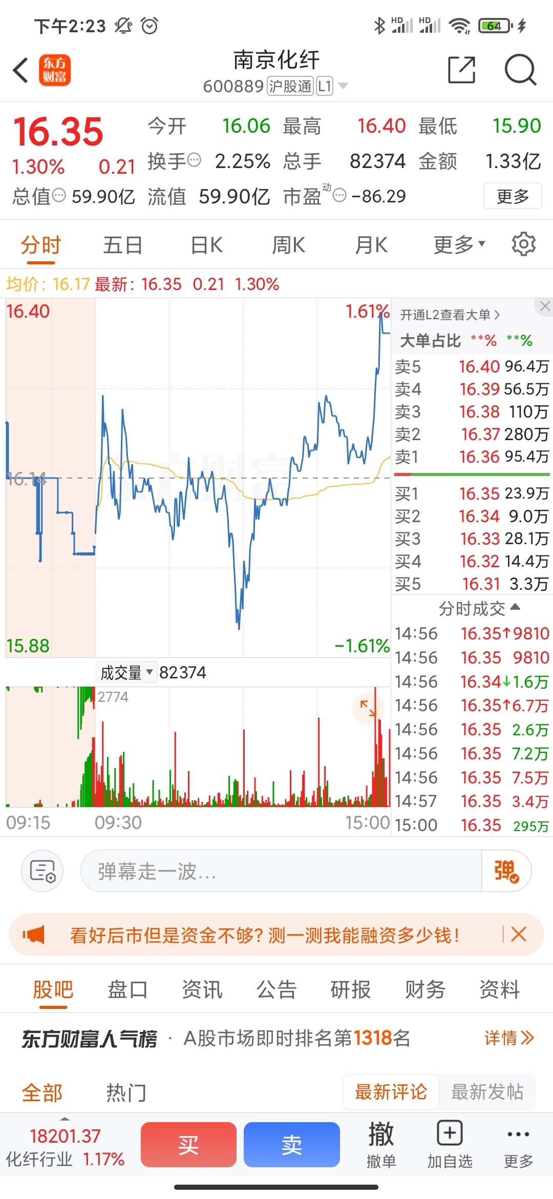 $南京化纤(SH600889)$