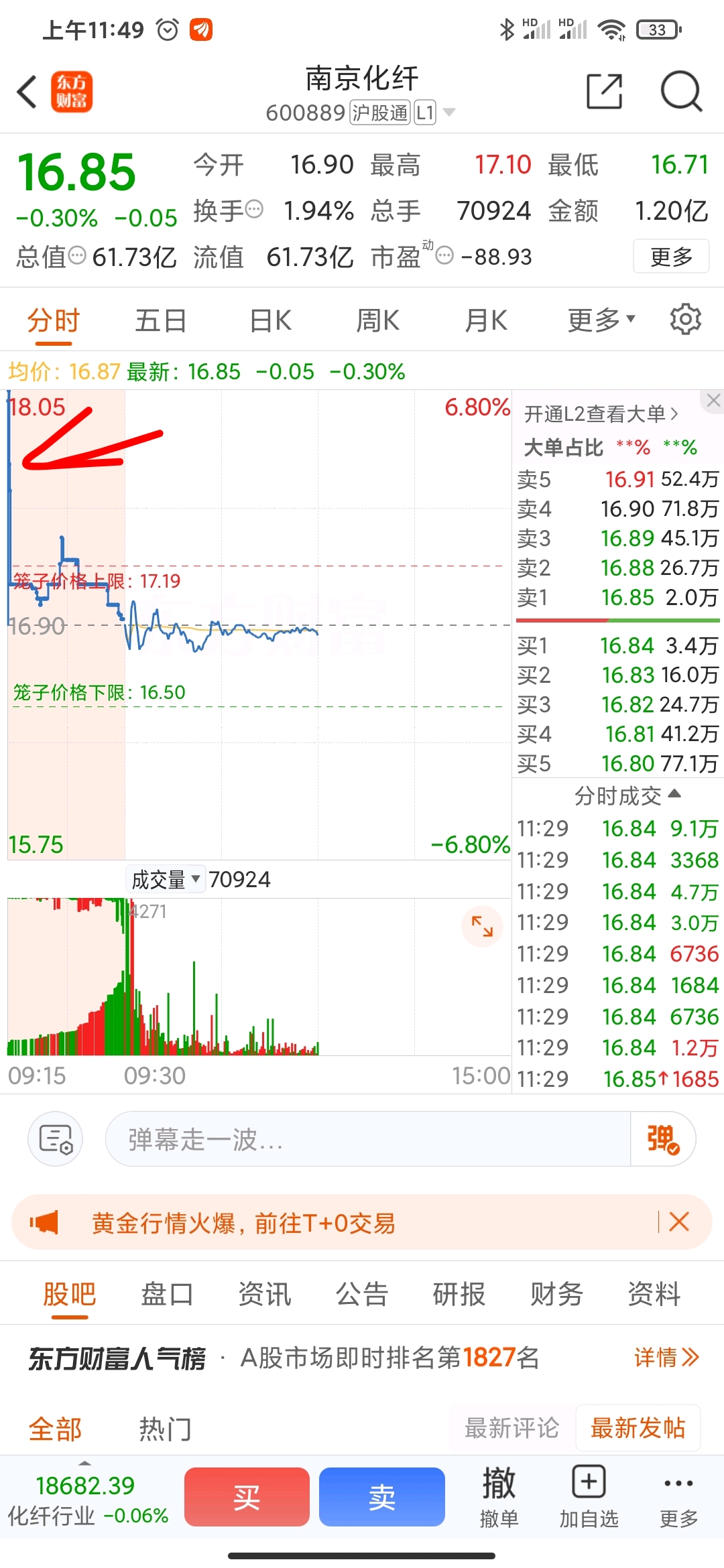 $南京化纤(SH600889)$ 有公告有隔夜单就是无价格,大概率是出货了