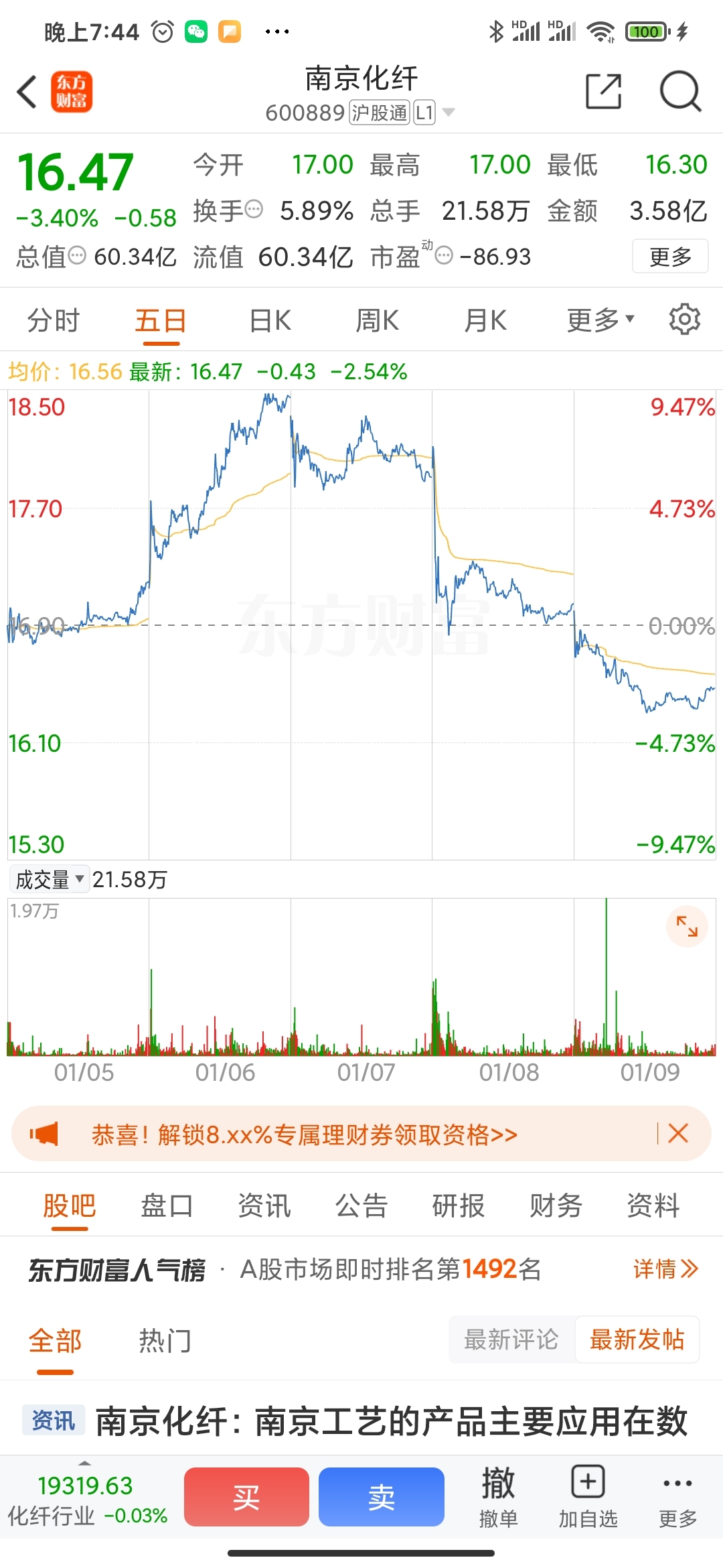 $南京化纤(SH600889)$