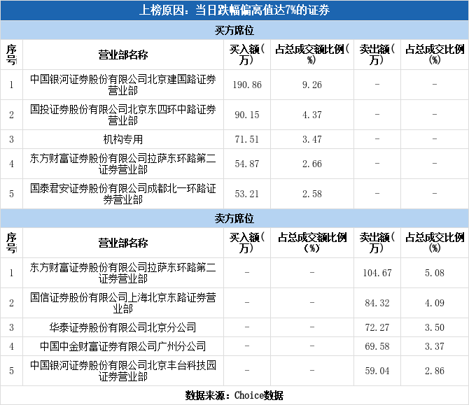 机构现身龙虎榜,大晟文化跌停(01-24)