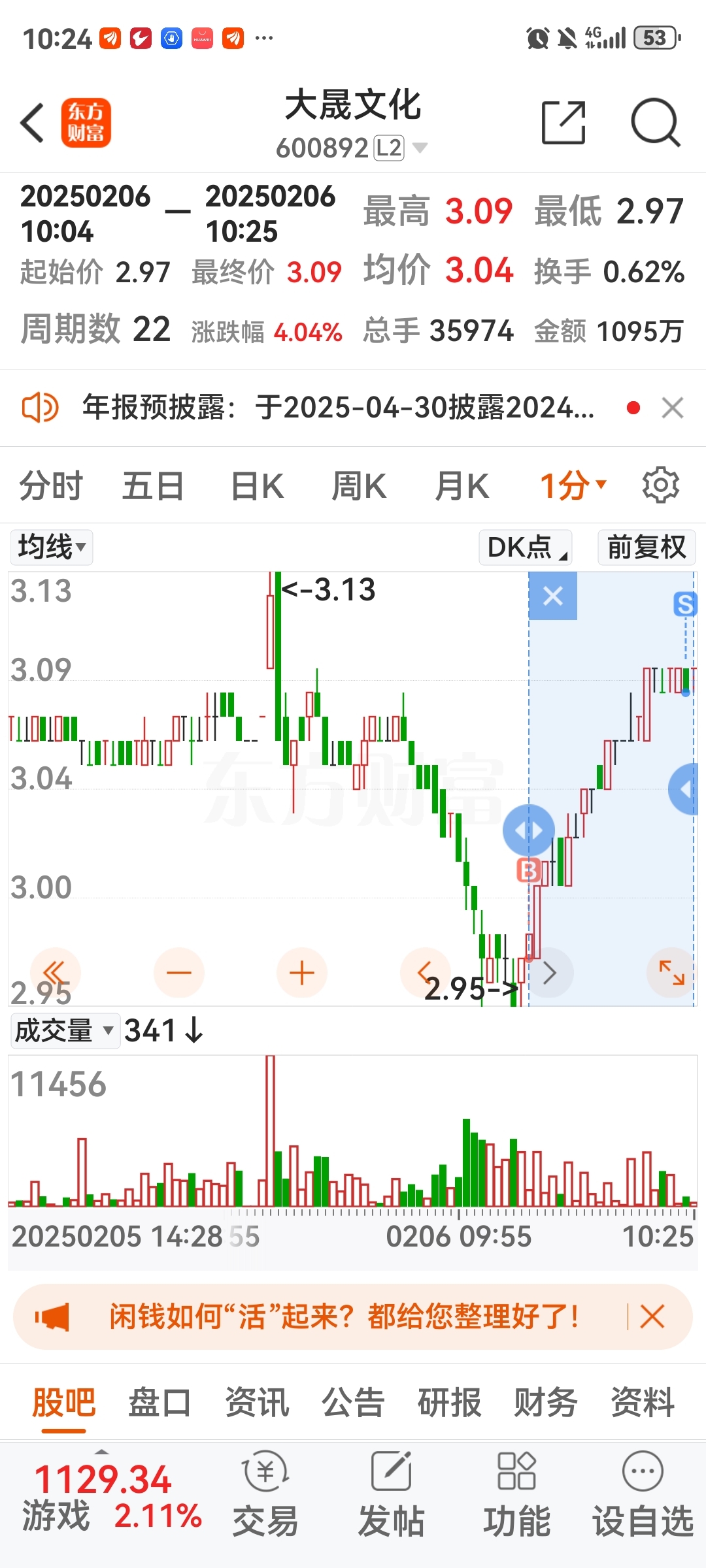 $大晟文化(SH600892)$ 抄底了三个点收工了