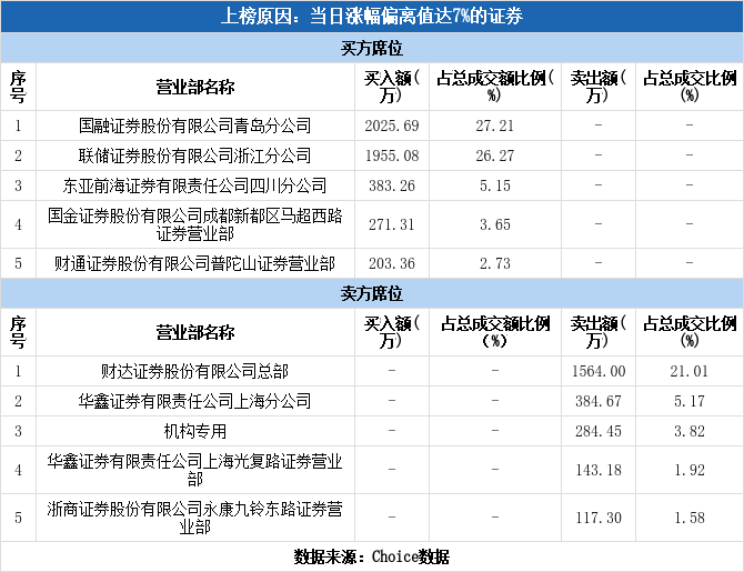 机构现身龙虎榜,大晟文化涨停(02-18)