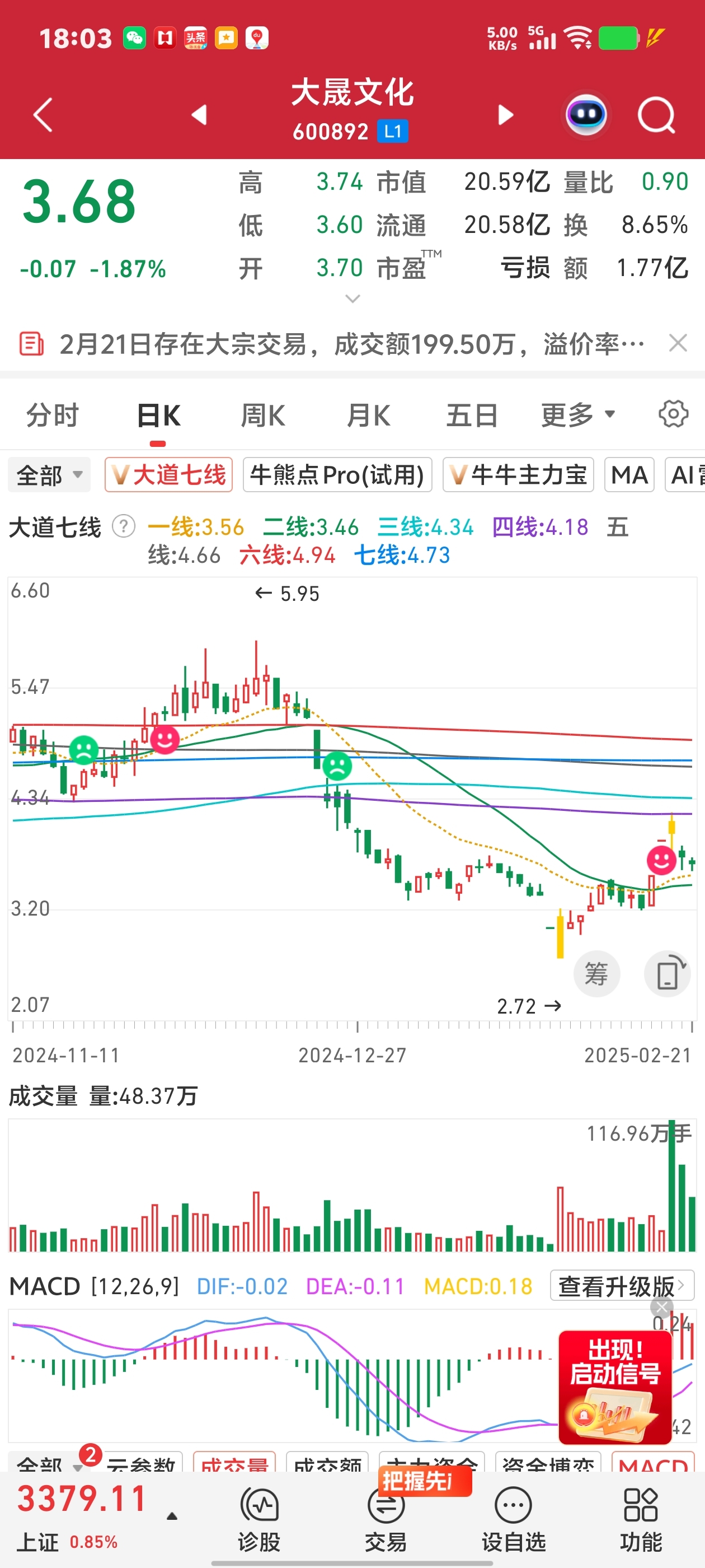$大晟文化(SH600892)$ 此股阻力位4.18,