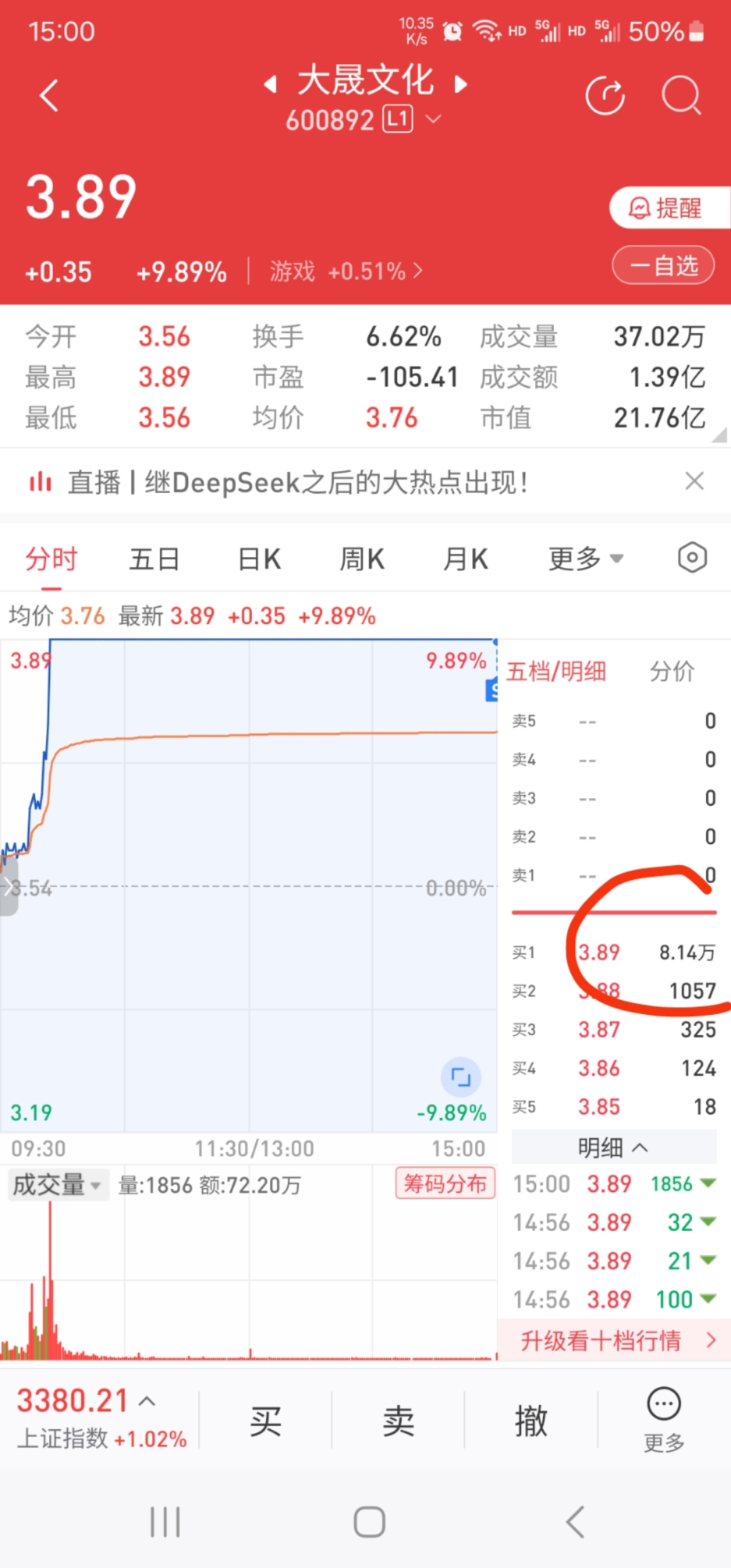 $大晟文化(SH600892)$ 不知道我做的对不对