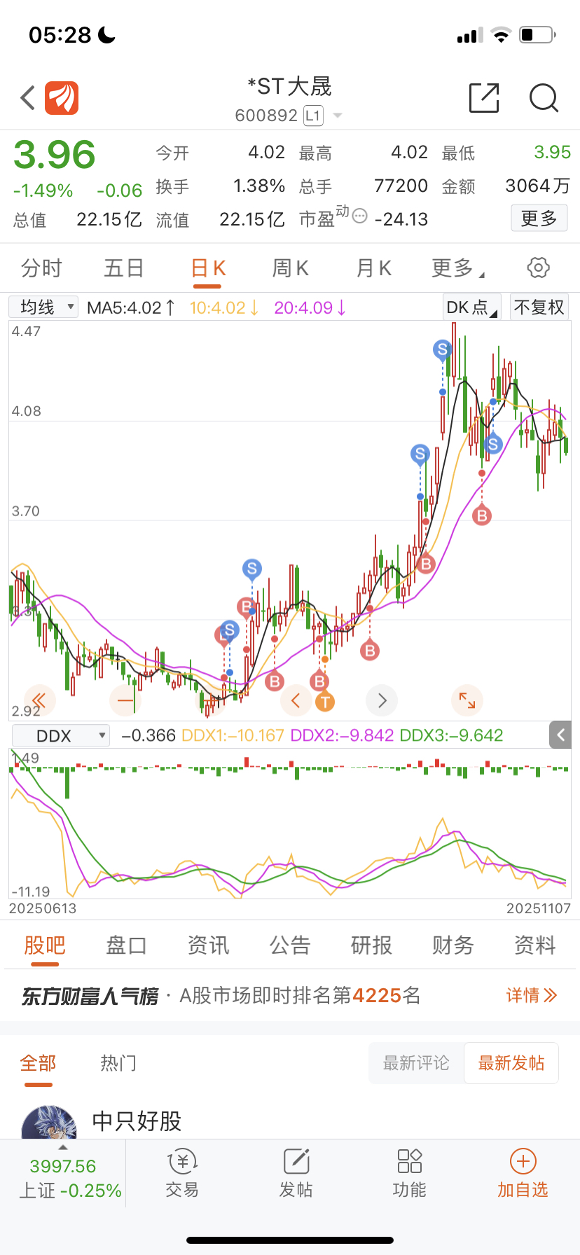 看了买多贴,好多人就喜欢死拿不确定保壳的票,以前我也是这样的,现在不去猜,走坏就割,事教人一次就会,还有告诉你们,ST都有周期的,12-1月其中会大回调,没炒几年ST的根本不懂。大晟营收缺口那么大,不值得去博。