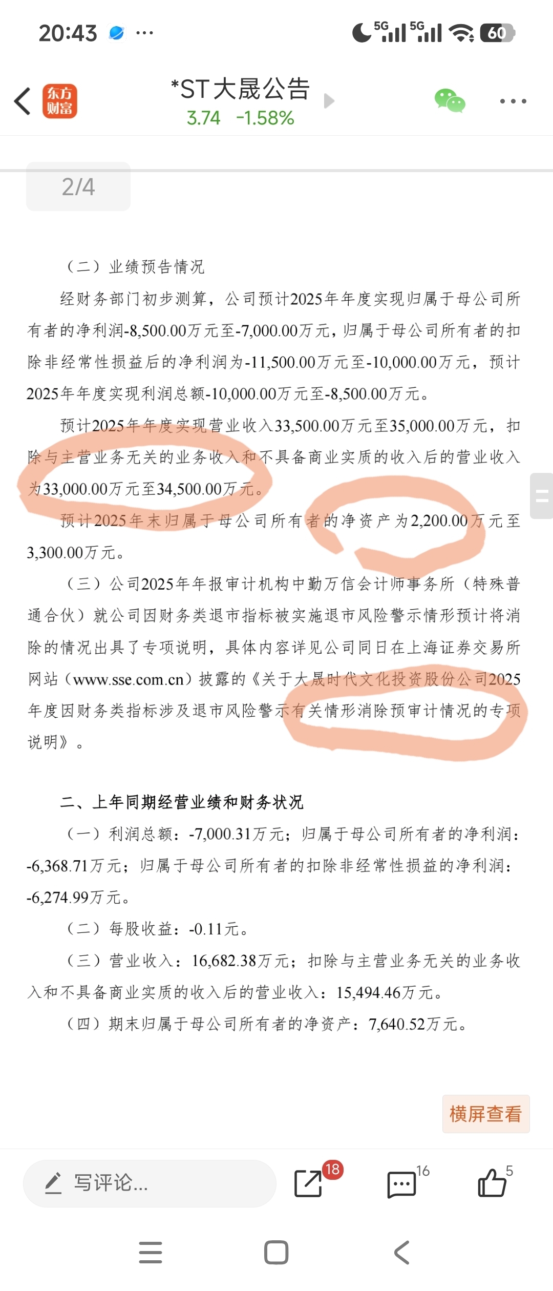 $*ST大晟(SH600892)$ 大晟文化有净资产,有营业额,预计消除退市风险警示,摘帽可能性大,比较大。