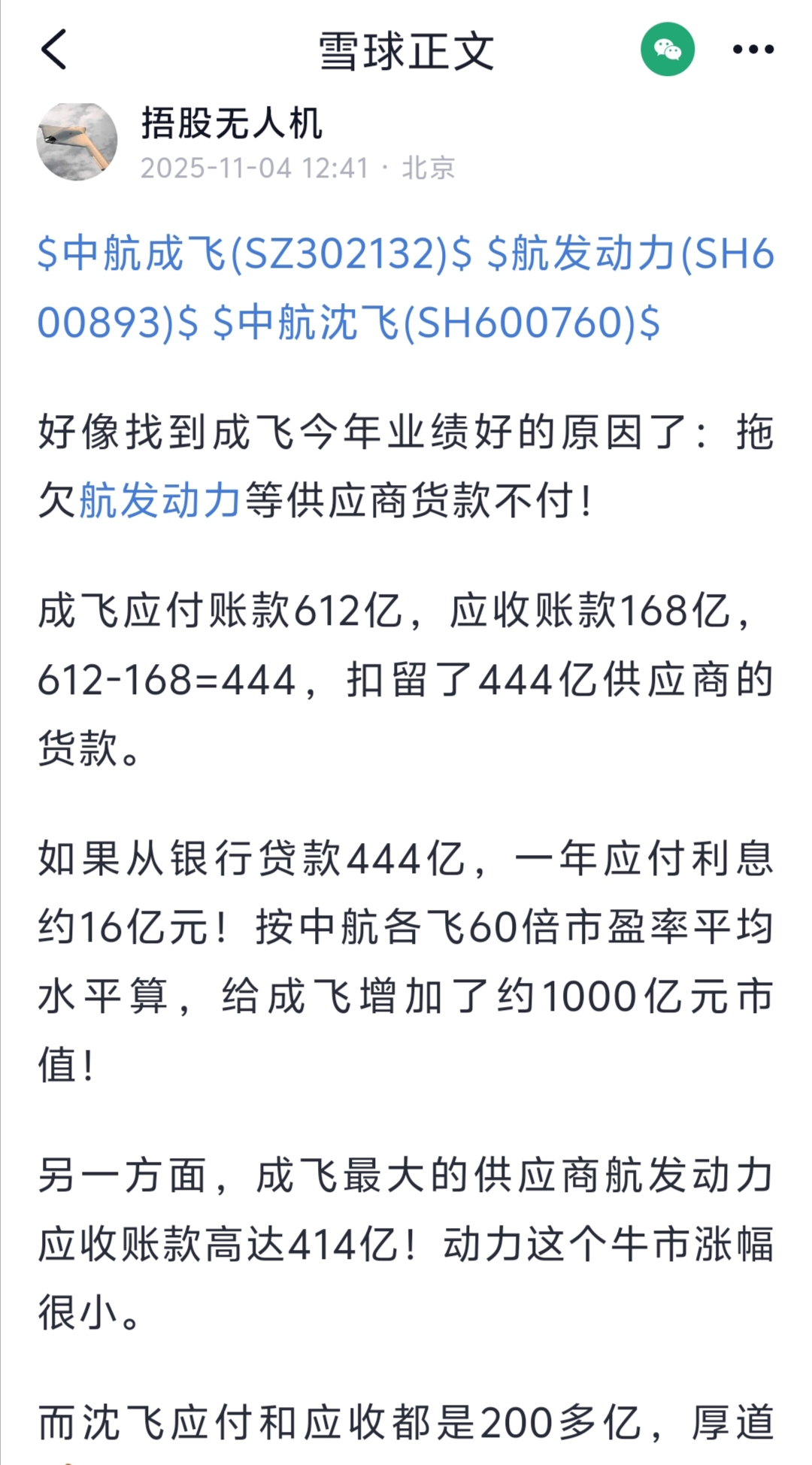 $航发动力(SH600893)$ $中航成飞(SZ302132)$ 动力为什么不找成飞要账,管事的收成飞好处了?