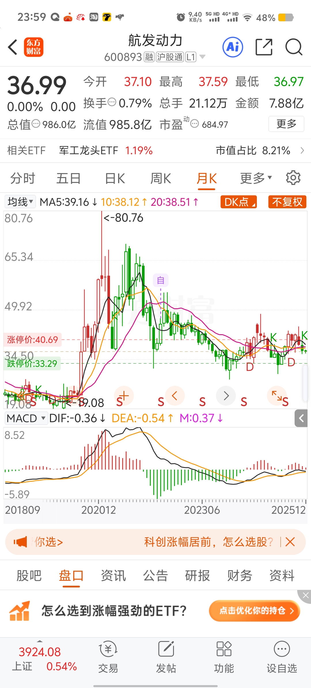 $航发动力(SH600893)$ 自选后跌了三年多,目测还得两年。