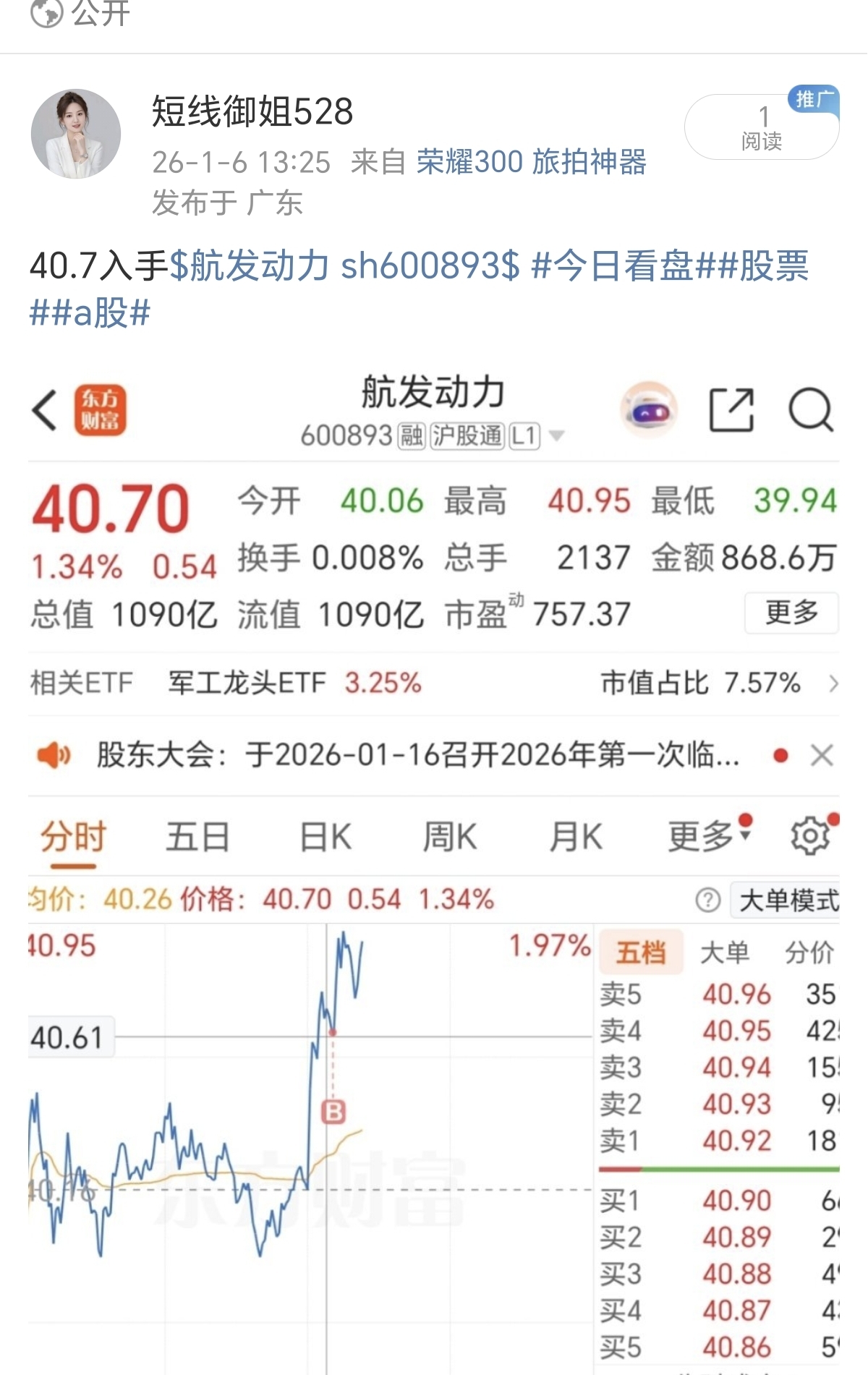 40.7入手$航发动力(SH600893)$