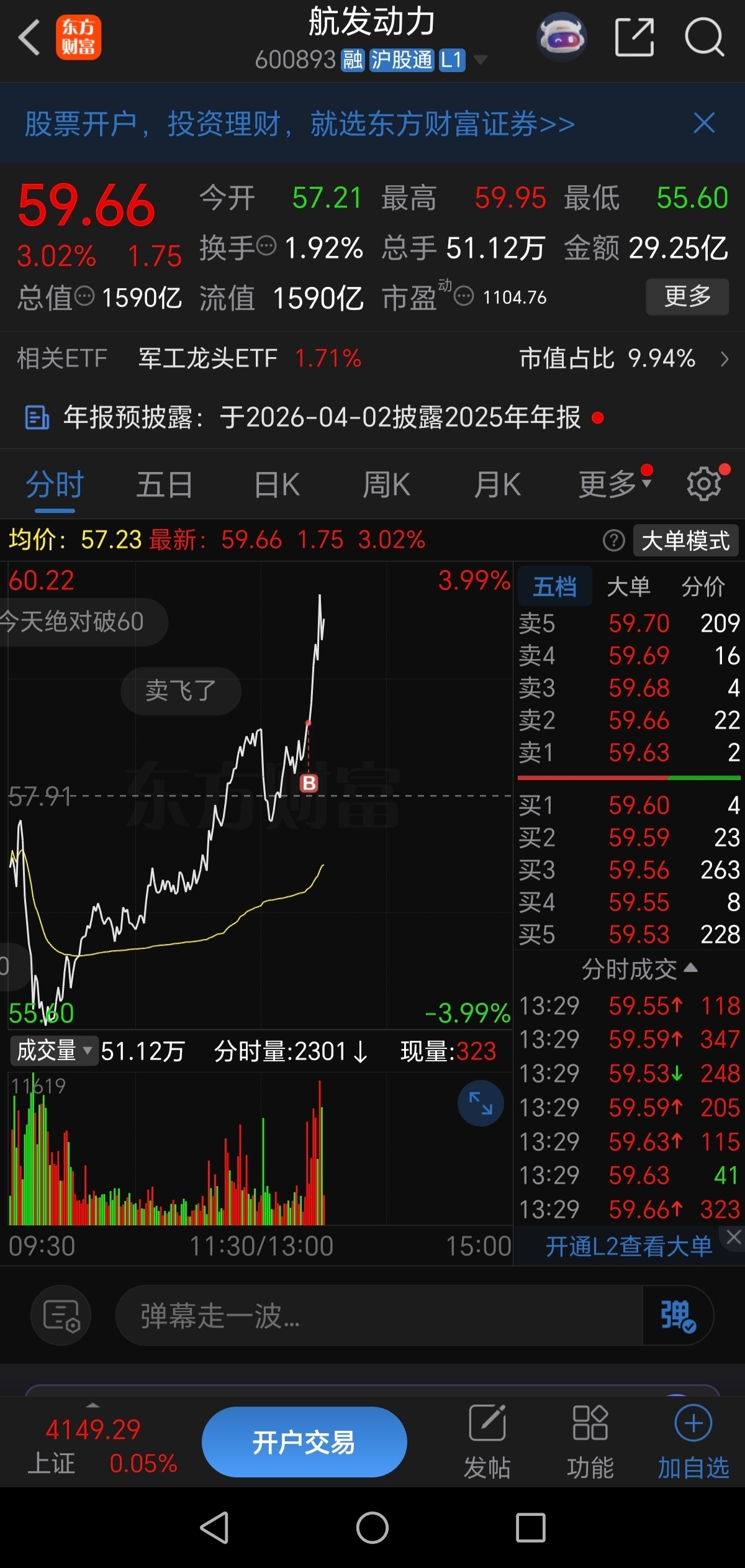 58.62,果断入手$航发动力(SH600893)$