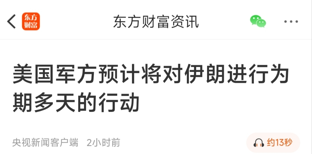 #强势机会# #伊朗遭袭引爆全球避险潮!国际油价大涨# #社区牛人计划# $长城军工(SH601606)$ $航天彩虹(SZ002389)$ $中航沈飞(SH600760)$ @股吧话题 @社区精选 @东方财富创作小助手