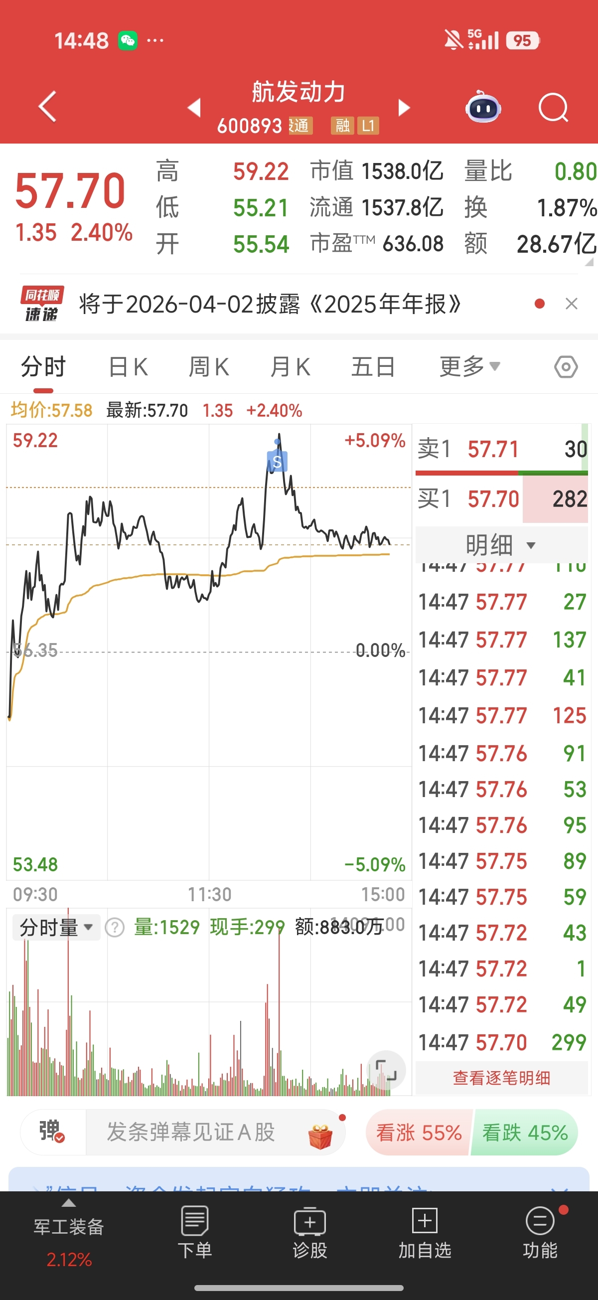 $航发动力(SH600893)$ 保本跑了,真的难熬
