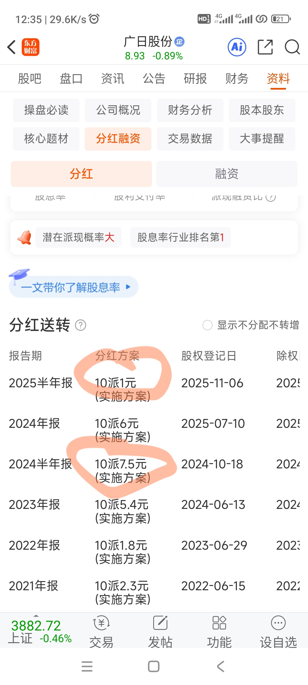 $广日股份(SH600894)$ 分红一下少很多。