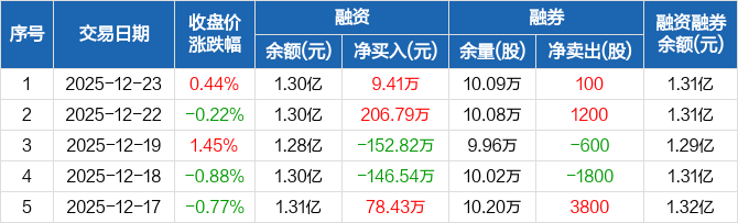 广日股份:融资净买入9.41万元,融资余额1.3亿元(12-23)