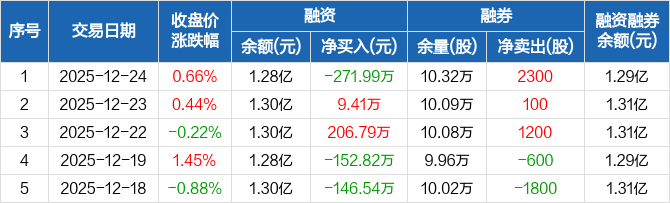 广日股份:融资净偿还271.99万元,融资余额1.28亿元(12-24)