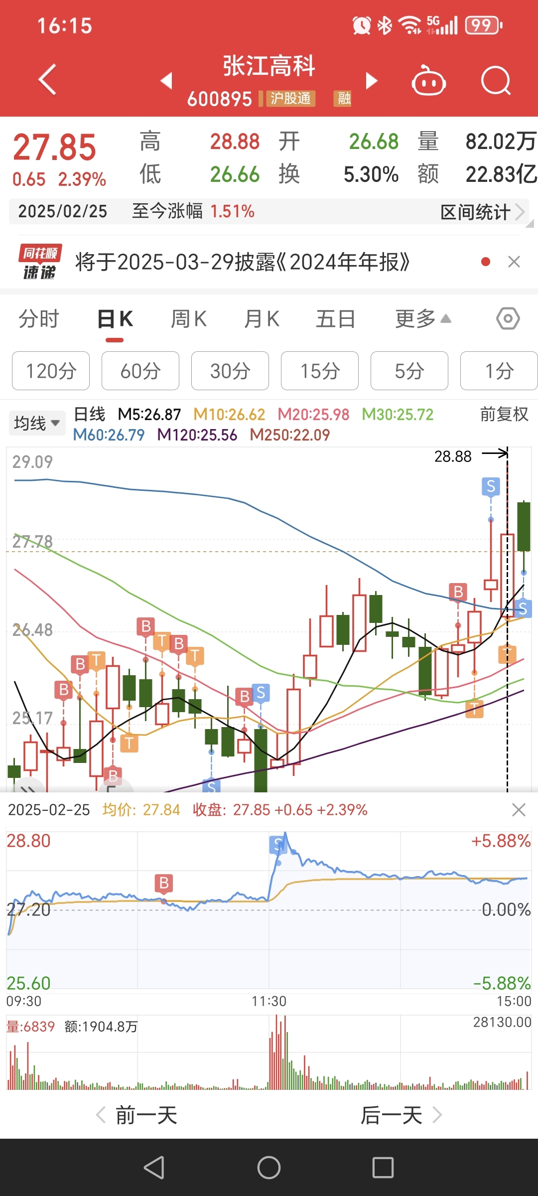 $张江高科(SH600895)$ 昨天T了,过两天择低买入