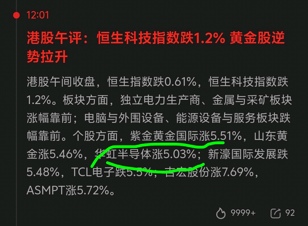 $张江高科(SH600895)$ 华虹科技港股今天突破前高,华虹科技是张江高科园区上市公司,和微电子有直接关联,星期四应该高开了张江高科