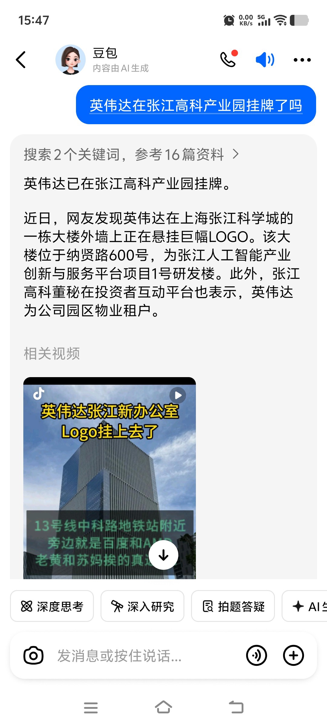 $张江高科(SH600895)$ 英伟达在张江高科产业园挂牌了