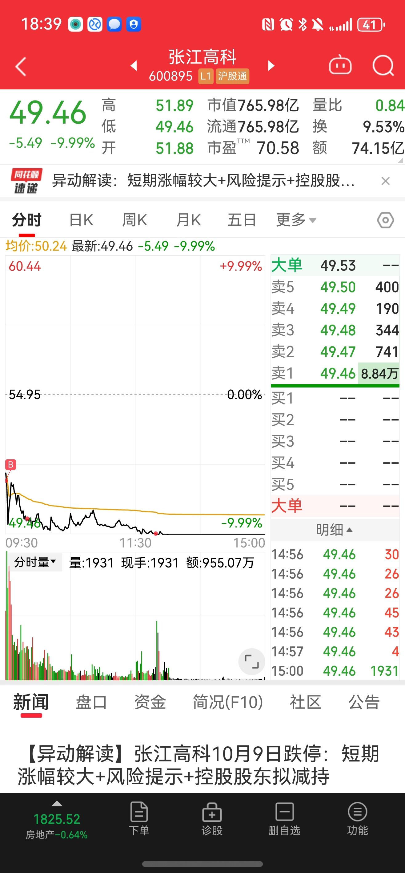 $张江高科(SH600895)$ 用行动说话